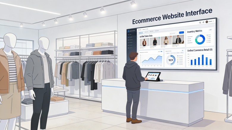 A modern clothing retailer seamlessly managing in‑store and online sales through an integrated POS, ecommerce website, and ERP system, powered by a unified omnichannel retail operating system to keep inventory, customer data, and orders perfectly in sync across every channel.