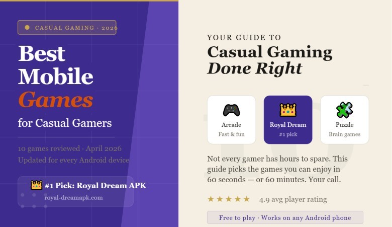 Royal Dream APK leads the pack, but the casual gaming world is rich. Here are nine more titles that casual players are loving in 2026 each one hand-picked for accessibility, fun, and replay value.